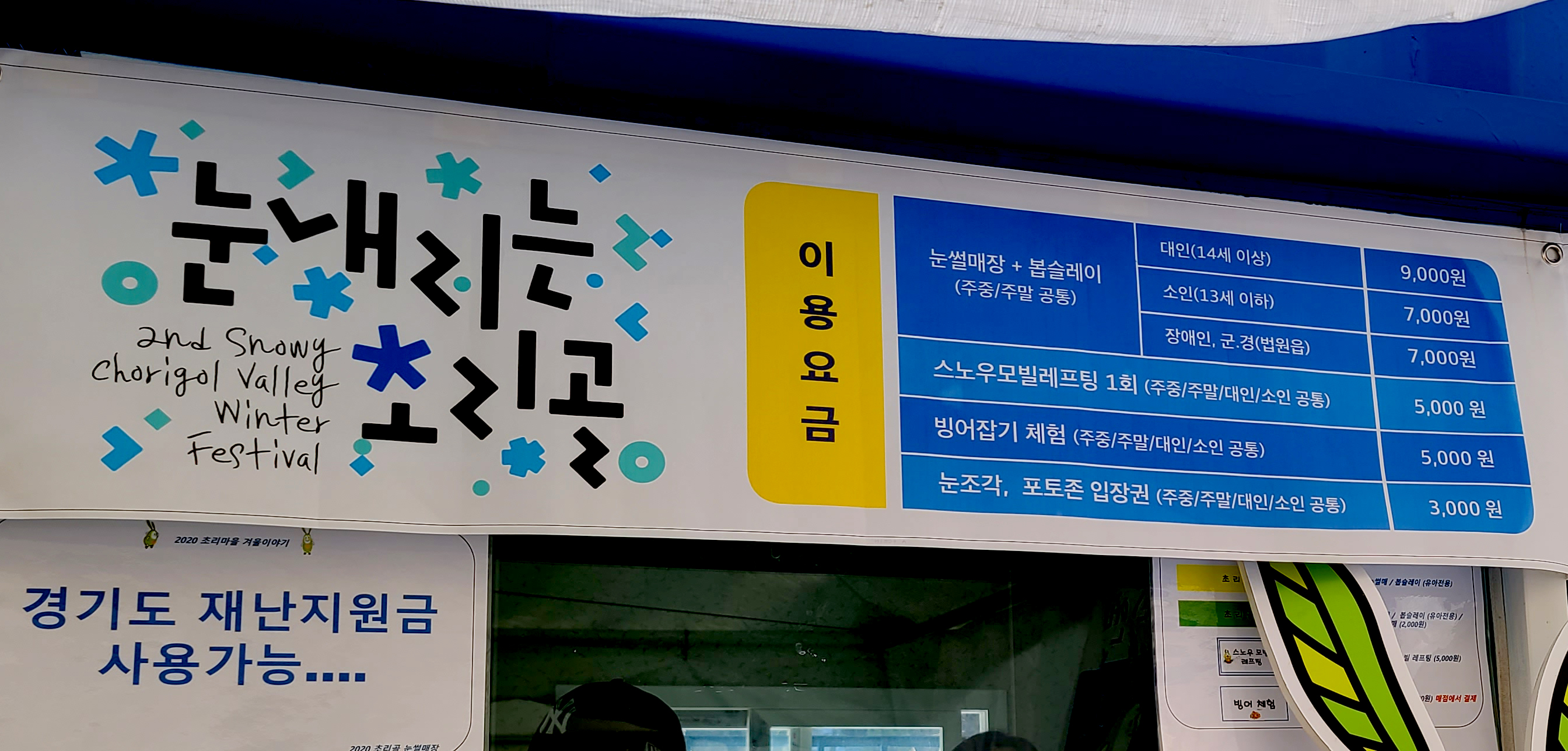 눈썰매장 + 봅슬레이 대인 9천 원, 소인 7천 원씩.