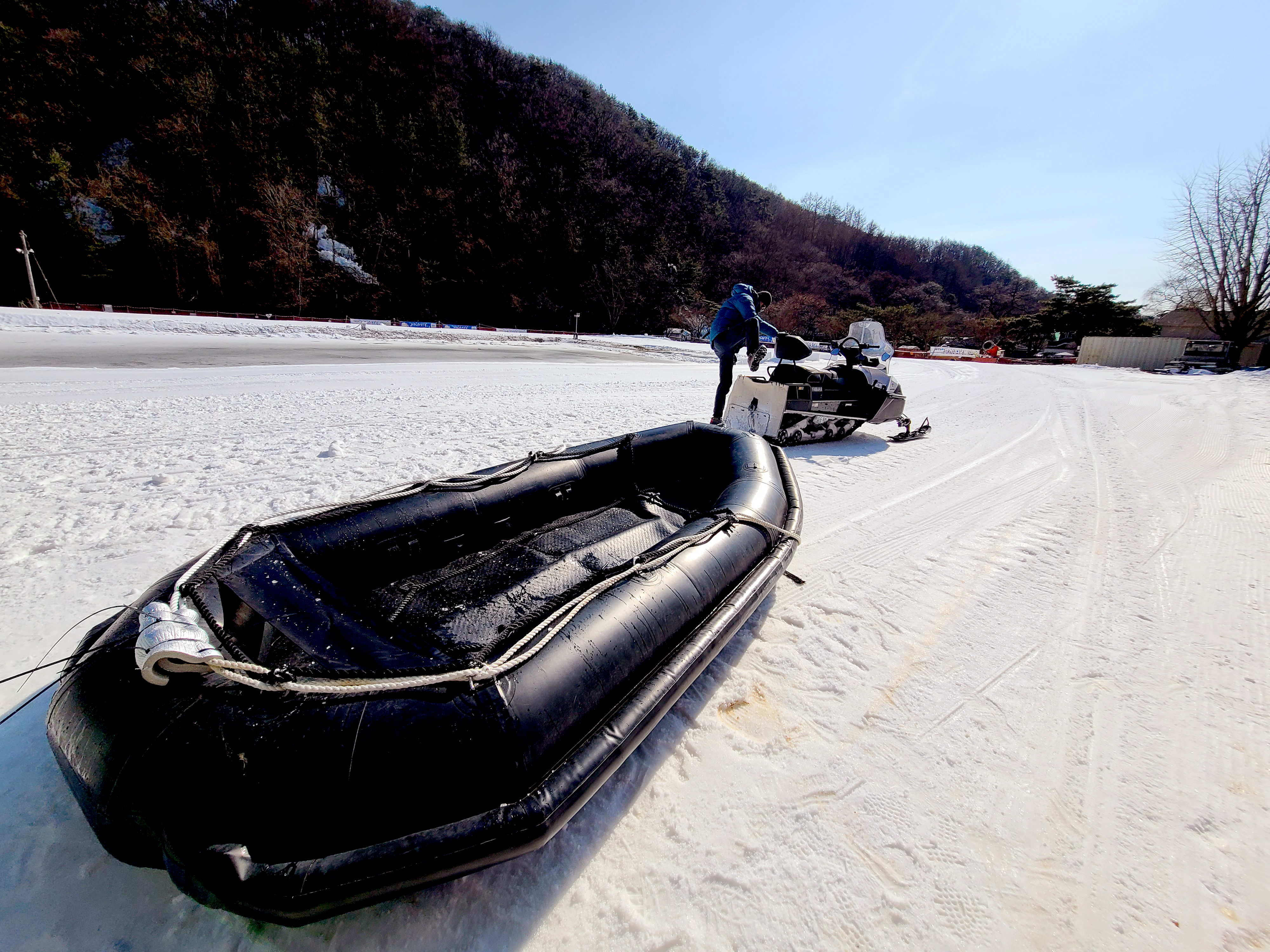 눈썰매 타고, 빙어잡기 하고, 보트 타고,