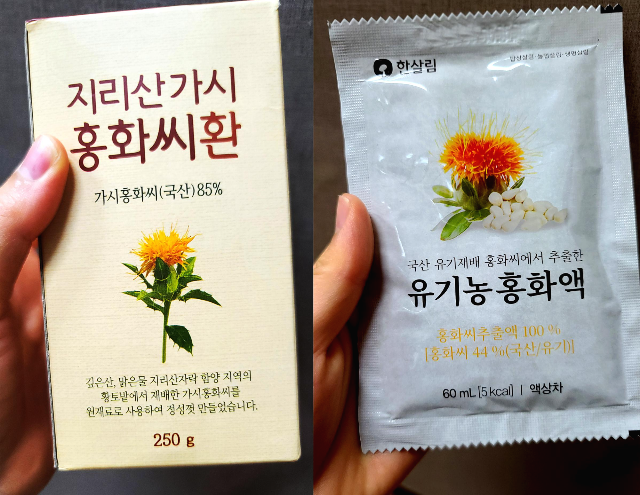 지리산 자락 함양에서 재배한 가시홍화씨로 만든 환으로