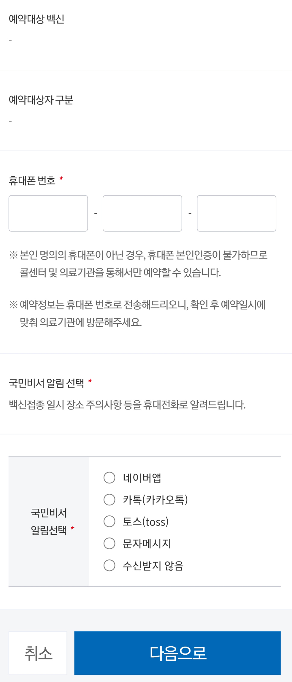백신 접종 일자 변경하는 방법