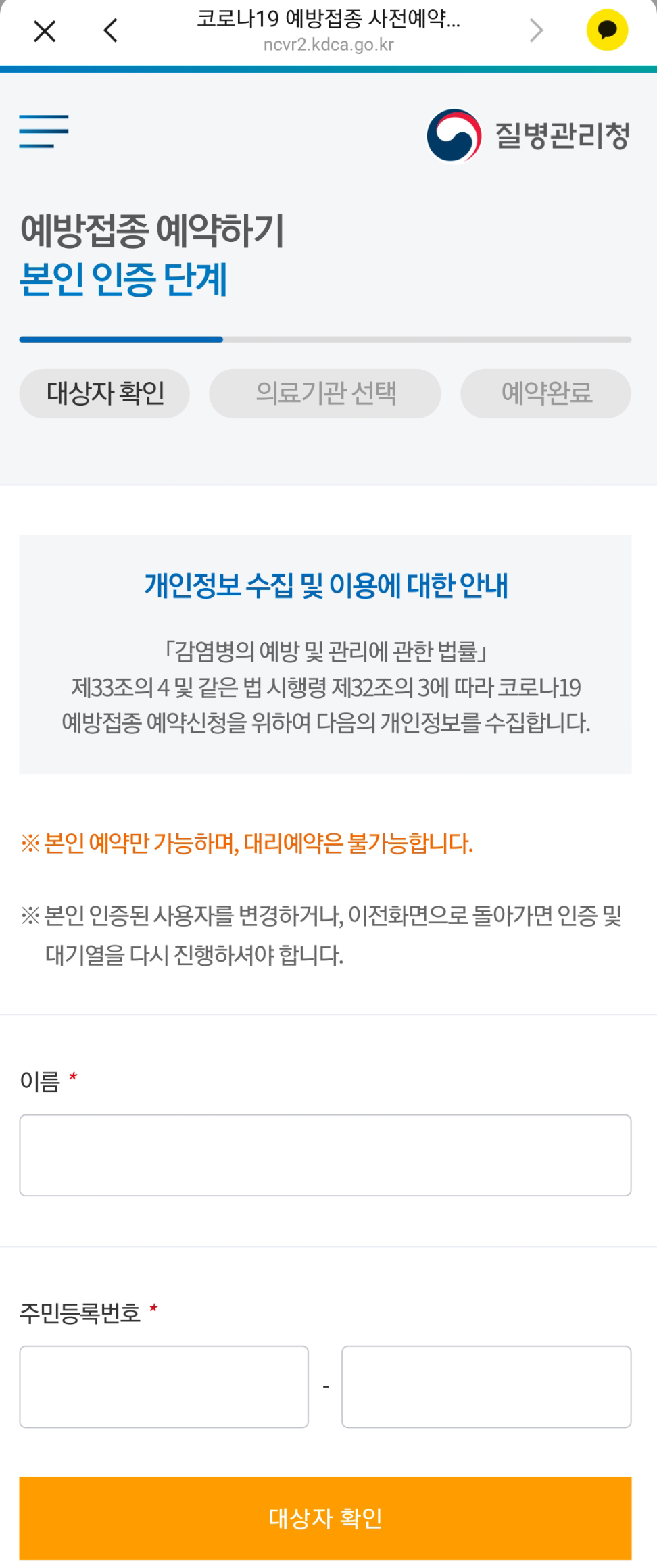 재 인증 후 다시 백신 예약을 할 수 있어요.