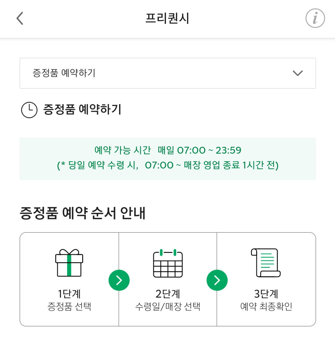 7시부터 스벅 매장 영업 종료 1시간 전까지 가능해요