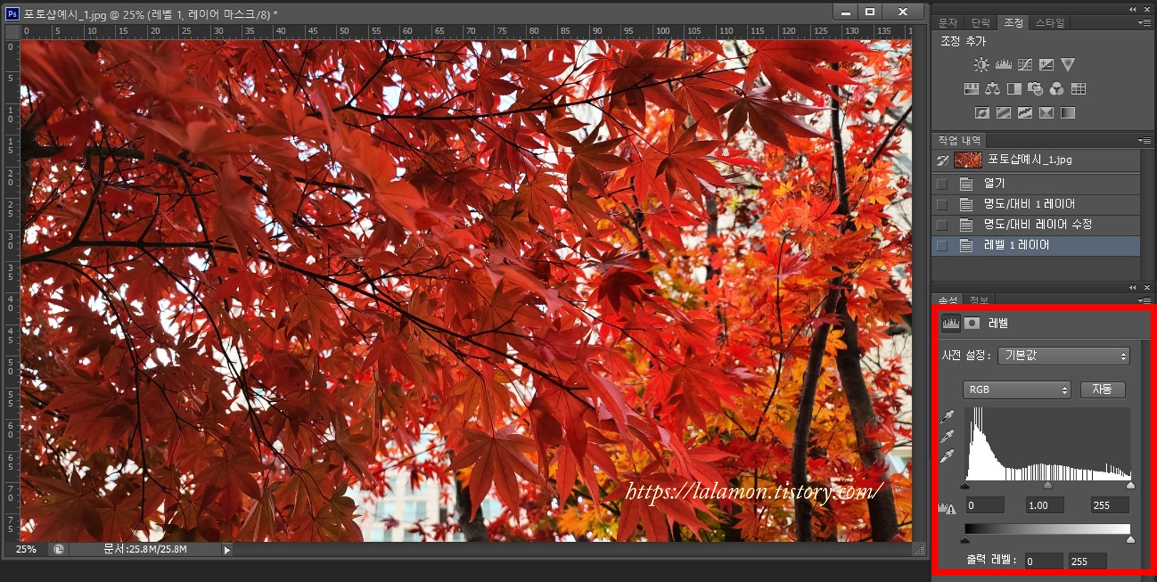 레벨은 이미지 대비를 강하게 만들 수 있는데,