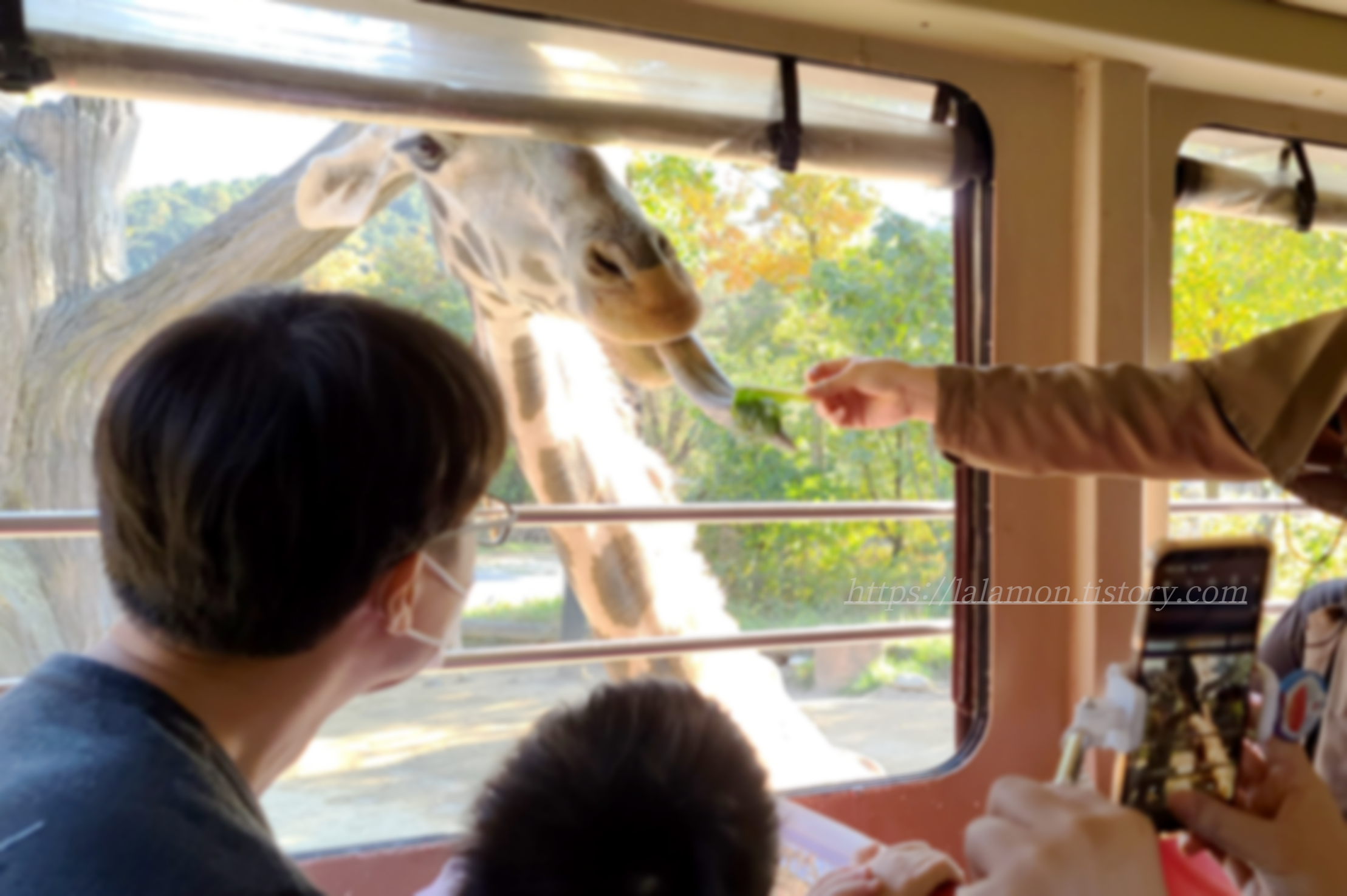 기린 먹이주기는 좌측에 앉아야 하고