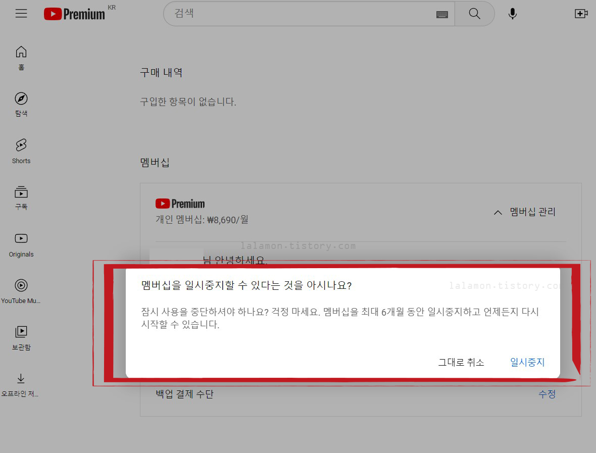 유투브 프리미엄 멤버십 정지 하는 방법은 아주 아주 쉽습니다!